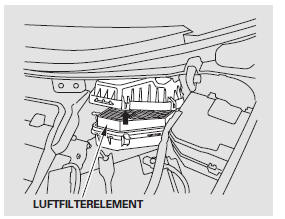 Der Luftfiltereinsatz befindet sich im Luftfiltergehäuse imMotorraum.
